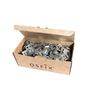 Крепеж изготовлен из оцинкованной стали толщиной 0,5 мм. По габаритам в 2 раза превосходит стандартный кляймер для вагонки. Широкая лапка с двумя ребрами жесткости у основания крепче прижимает доску к направляющим и выдерживает больший вес, чем кляймер для вагонки. Два ребра жесткости по бокам крепления приподнимают доску на 0,5 мм над телом крепежа и создают дополнительную микровентиляцию между направляющей и доской. Два овальных наклонных отверстия предназначены для использования строительных скоб, изогнутая лапка повышает комфорт монтажа.