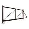Конструкция поставляется без заполнения, что позволяет выбрать индивидуальное решение. В базовую комплектацию входят опорные столбы, направляющая шина, роликовые опоры и полный набор фурнитуры. Автоматизация ворот доступна к